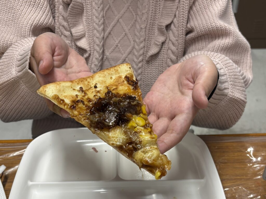 今日の昼食は、いつものメニューに1品プラス🍽️ なんと❗ クリスマスピザのサプライズが登場しました🎅🍕