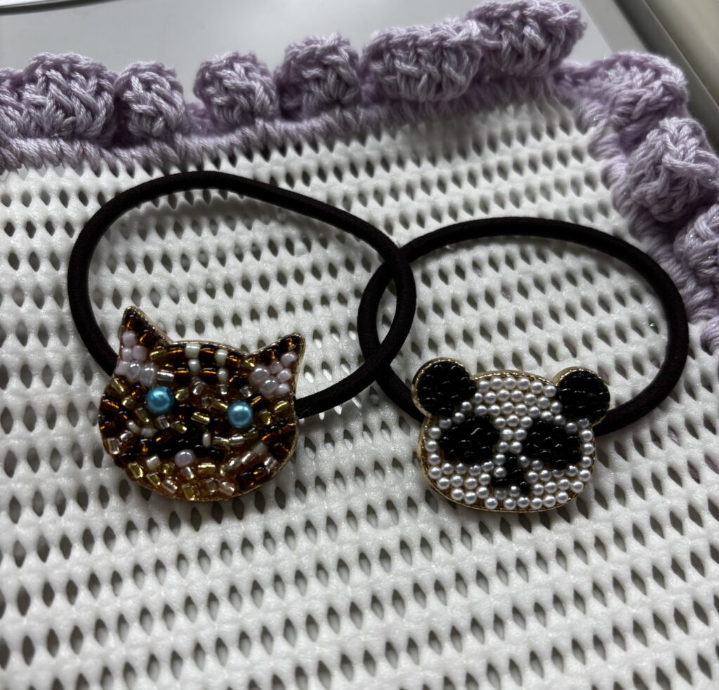今回は、ビーズをひとつひとつピンセットでつまみながら、丁寧に仕上げたヘアゴムのご紹介です😊 猫とパンダ、それぞれ表情が違ってとても可愛らしいですね。 細かいビーズを扱う作業は、集中力が必要でとても根気のいる工程ですが、 一粒ずつ慎重に配置しながら、最後まであきらめずに取り組まれていました👏 猫はカラフルなビーズで個性的に、 パンダは白と黒を基調にシンプルで優しい雰囲気に仕上がっています。 どちらも世界にひとつだけの作品です🐱🐼 完成したときには「できた!」と嬉しそうな様子も見られ、 達成感を感じられているのが印象的でした✨ これからも楽しみながら、少しずついろいろな作品に挑戦していきましょうね😊